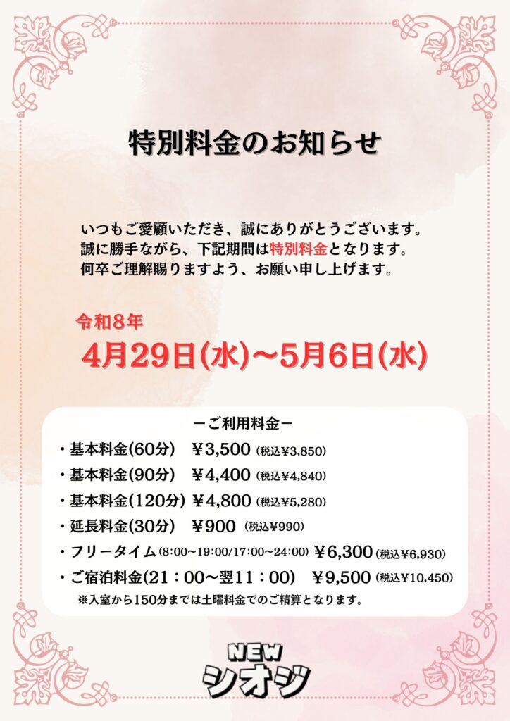 特別料金のお知らせ